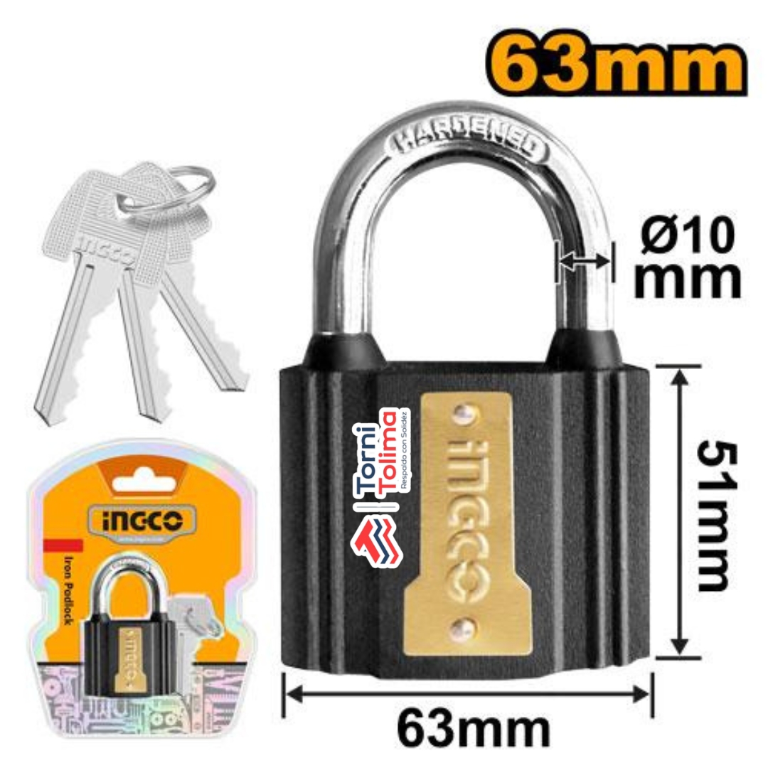 📌 Modelo: INGCO DIPL0601 — candado de hierro con recubrimiento resistente al agua. Ingco Candado 63 mm DIPL0601