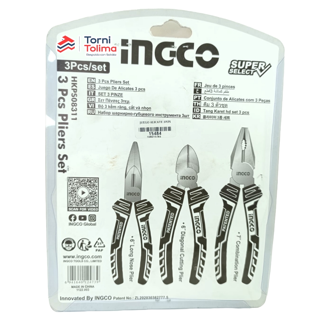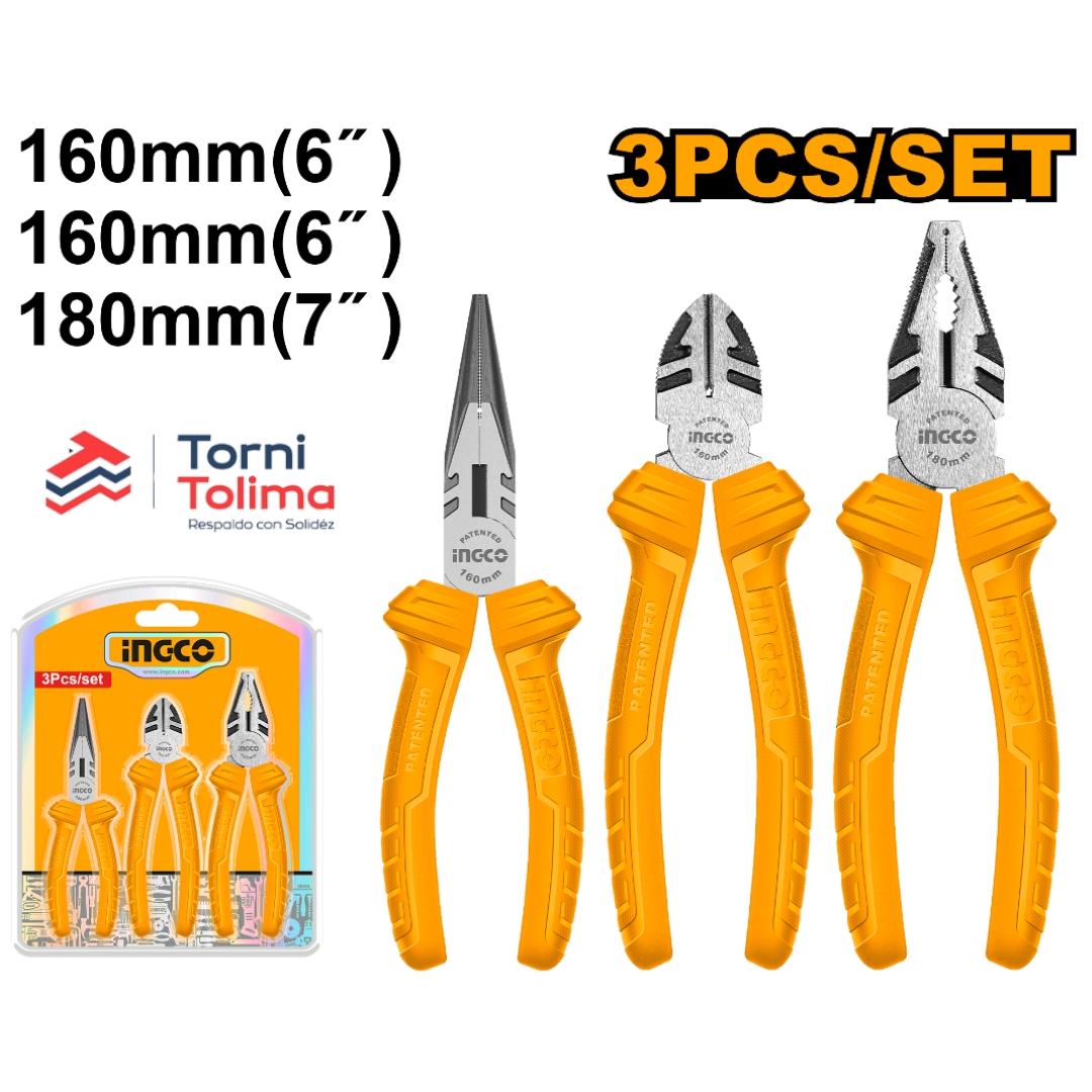 Juego de Alicates 3 PIEZAS – Punta, Cortafrío, Alicate HKPSO8311 INGCO