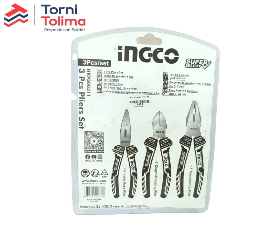 Juego Alicate 3 PIEZAS punta, cortafrío, alicate HKPSO8311 INGCO
